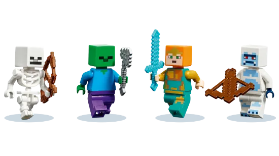 The magnificent LEGO® Minecraft® The Ice Castle (21186) puts all the creativity, action and reconfigurable fun of the Minecraft game into the hands of players aged 8 and up. A Minecraft set to marvel at! Minecraft players can explore endless opportunities to build, play and display with this versatile set. Characters include the Royal Warrior, a yeti and a hostile group of skeletons and zombies, ready to attack the toy castle with a cool selection of weapons. Hands-on features include a launcher on the castle’s battlements that fires arrows at the advancing enemy. There’s a wealth of authentic accessories, such as a cauldron for mixing potions, a treasure chest packed with precious supplies and a classic crafting table from the Minecraft game. And, when the adventure is over, the structure easily reconfigures to inspire a whole new world of creative Minecraft fun. Minecraft® action – LEGO® Minecraft The Ice Castle (21186) is packed with play-and-display possibilities for Minecraft players to explore and reconfigure for endless creative fun Familiar characters – The playset contains the Royal Warrior, a yeti and 4 hostile mobs: 2 skeletons and 2 zombies Hands-on adventures – Players take on a series of adventures in and around the castle, including an attack which they can fend off using a flick-fire arrow launcher Creative play for kids – Looking for a creative birthday, holiday or any-day gift for Minecraft® players aged 8 and up? This versatile, action-packed playset has got it all Versatile playset – Measuring over 6 in. (16 cm) high, 9 in. (23 cm) wide and 7.5 in. (19 cm) deep, this reconfigurable set is packed with play possibilities Authentic accessories – Includes a diamond sword and banner shield, a crossbow, axe, crafting table, stonecutter, anvil, cauldron and many more items Minecraft® made real – LEGO® Minecraft sets give kids a different way to enjoy the video game, with characters, scenes and features brought to life with the hands-on creativity of LEGO bricks Quality guaranteed – LEGO® components fulfill stringent industry quality standards to ensure they are consistent, compatible and connect and pull apart perfectly every time Safety assured – LEGO® components are dropped, heated, crushed, twisted and analyzed to make sure they satisfy rigorous global safety standards