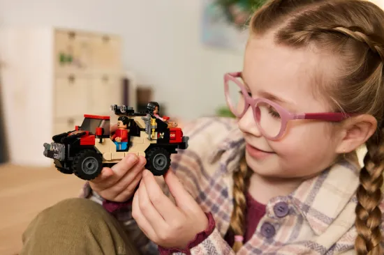 Surprising adventures await kids and film fans aged 6 plus in this Raptor Off-Road Escape (76972) LEGO Jurassic World set, a dinosaur gift for boys and girls inspired by the Jurassic World Rebirth film. After building the dinosaur playset, kids can play out favourite film scenes or new stories with Reuben and Isabella Delgado minifigures, the Baby Dolores pet dinosaur figure and a Velociraptor figure with a movable jaw. The building kit includes a toy off-road vehicle and a tracking device, a bush with a ‘surprise’ push-scare effect that can be used with the Velociraptor during play – and much more. The LEGO Builder app guides young dinosaur fans on an intuitive building adventure, letting them zoom in and rotate models in 3D, save sets and track progress. The set works with other LEGO sets or LEGO Jurassic World building kits (all sold separately). Kids and grown-ups alike will love the ’surprise’ function that adds an extra dimension to the play experience. Set contains 285 pieces.
