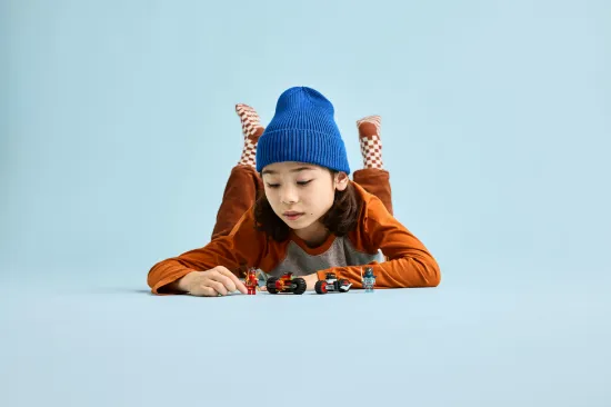 Kai’s Motorcycle Speed Race (71838) playset lets boys and girls aged 6 and over recreate fast-paced scenes from season 3 of the NINJAGO Dragons Rising TV show. The action-packed motorcycle toy battle set features 2 ninja bike toys with moving wheels: Kai’s race bike adorned with 2 daggers, and the villainous Spectral Dragonian Scout’s demon bike. The ninja vehicle set includes 2 NINJAGO minifigures to ride the bikes: Kai armed with a translucent reveal blade accessory and 2 golden katana sword accessories, and a Spectral Dragonian Scout with a sword accessory, so kids can enjoy great imaginative play on their own or with their friends as they stage good vs. evil battles. The LEGO NINJAGO range of sets and buildable ninja toys for kids includes dragons, vehicles and temples so fans can role-play adventures with their heroes. Each ninja playset can be created with the LEGO Builder app, which guides you and your child on an easy and intuitive building adventure. Set contains 79 pieces.